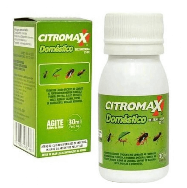 Citromax Doméstico Plus é um inseticida de Empresa Especializada eficaz contra formigas (Monomorium florícola e Monomorium pharaonis), pulgas (Ctenocephalides sp), moscas (Musca doméstica) e Aedes Aegypti.