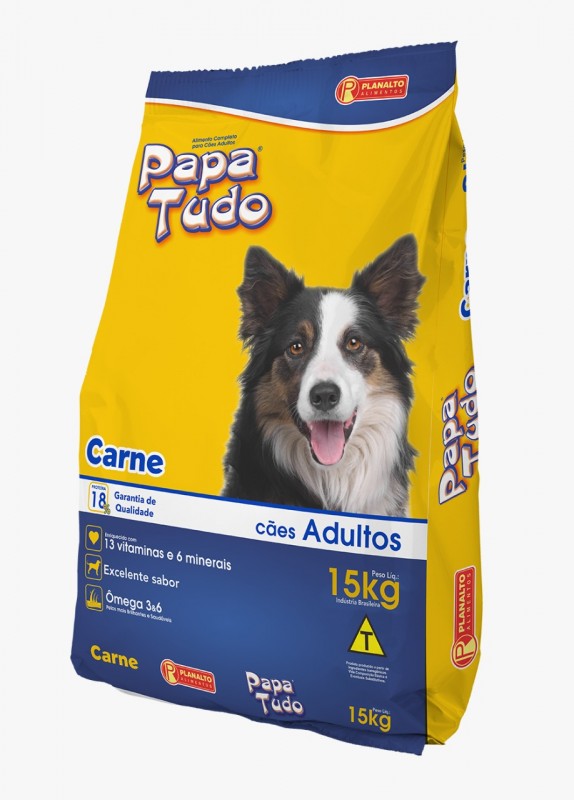 Papa Tudo é um alimento completo e saboroso, elaborado com ingredientes de qualidade, selecionados e balanceados, que suprem as necessidades nutricionais diárias dos cães adultos, das mais diversas raças, além de ser enriquecido com vitaminas e minerais, essenciais à boa saúde do seu cão. Disponível nas versões original e carne.