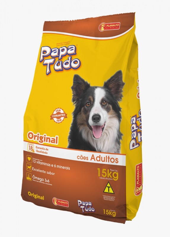 Papa Tudo é um alimento completo e saboroso, elaborado com ingredientes de qualidade, selecionados e balanceados, que suprem as necessidades nutricionais diárias dos cães adultos, das mais diversas raças, além de ser enriquecido com vitaminas e minerais, essenciais à boa saúde do seu cão. Disponível nas versões original e carne.